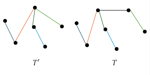 - 每个新点(第一次出现的边的一个端点)都会和当前的“中心”连边。