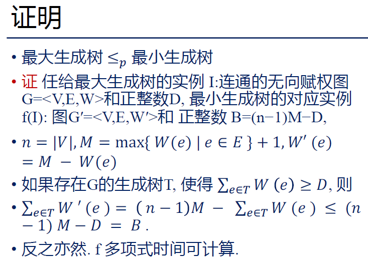 最大生成树判定规约到最小生成树判定