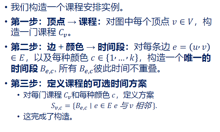 这样就可以将k着色问题的实例转化为课程安排问题的实例。