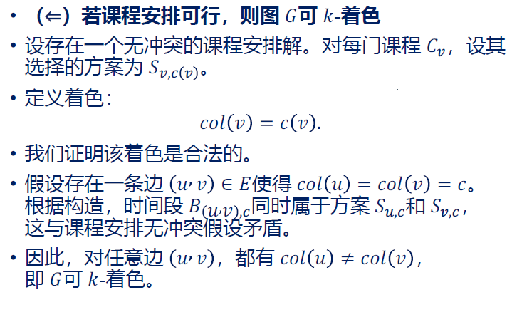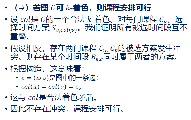 从课程安排实例到k着色实例:假设是合法课程安排,反设。