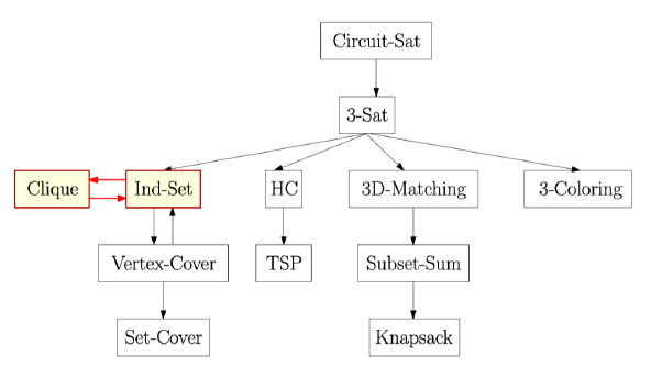 之后Ind-Set和Clique(最大团)互推,因为在给边取补的图中,S就是最大团。